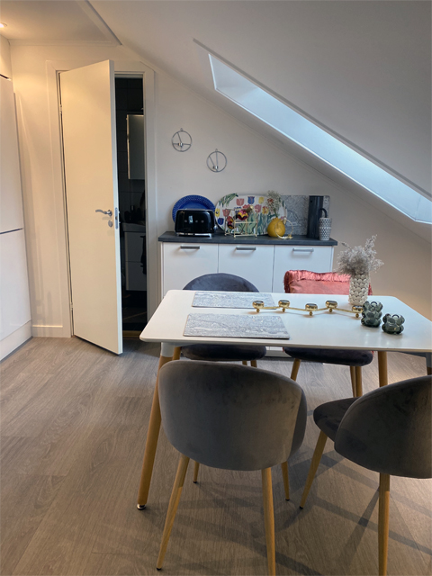 På 3:e våningen en välrenoverad vindsvåning 41 kvm.