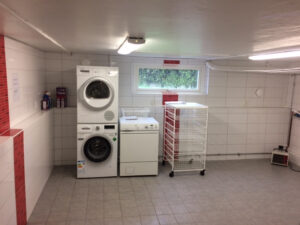 Hel kaklad, elegant och välutrustad tvättstuga.