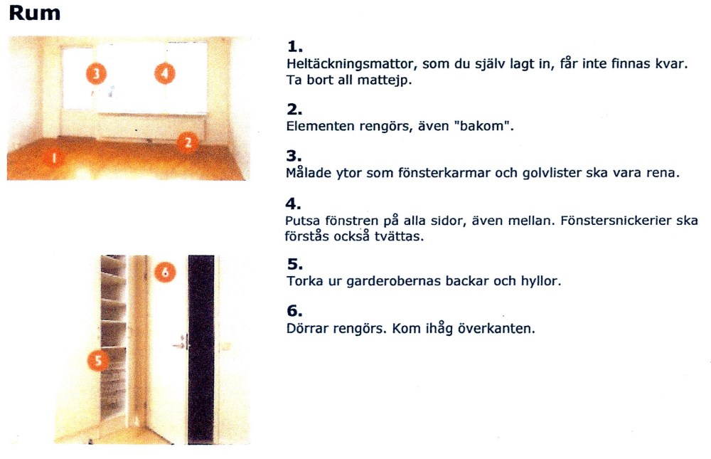 Kom särskilt ihåg vid rengöring i samband med besiktning och avflyttning